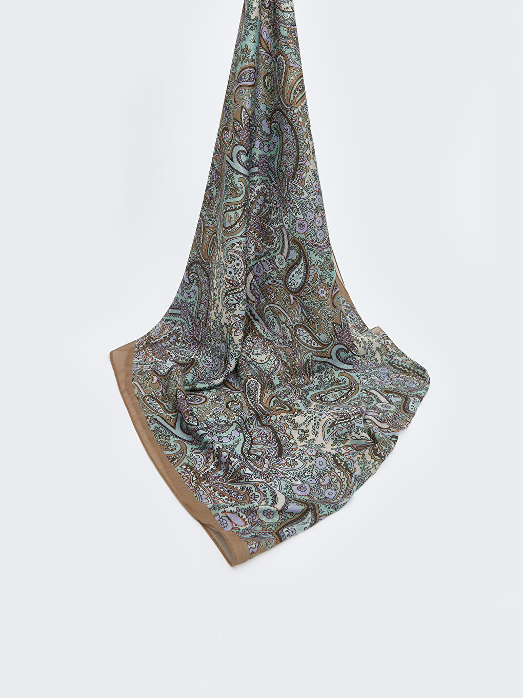 شال زنانه طرح دار از پارچه ساتن دوخته شده است.