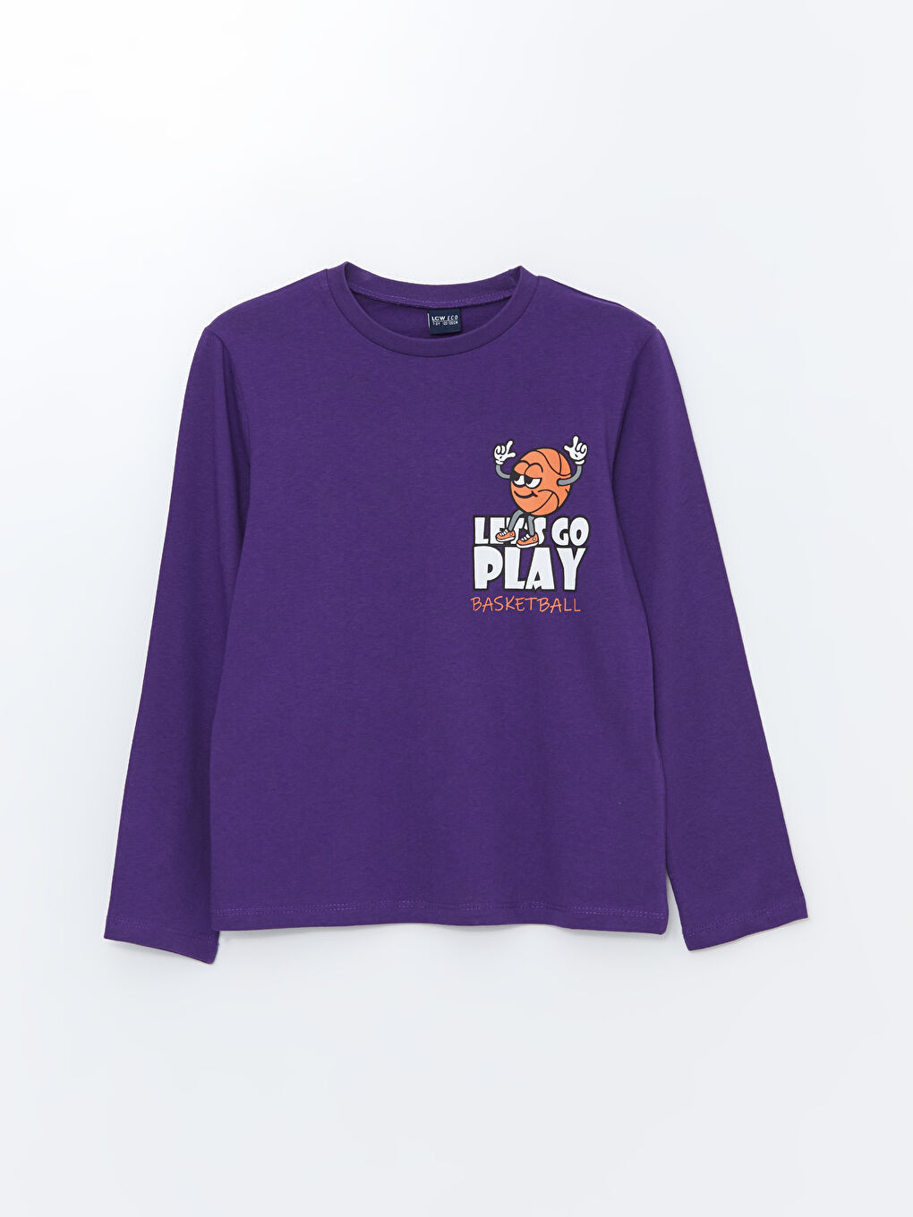 تی‌شرت آستین بلند پسرانه طرح‌دار یقه گرد بنفش