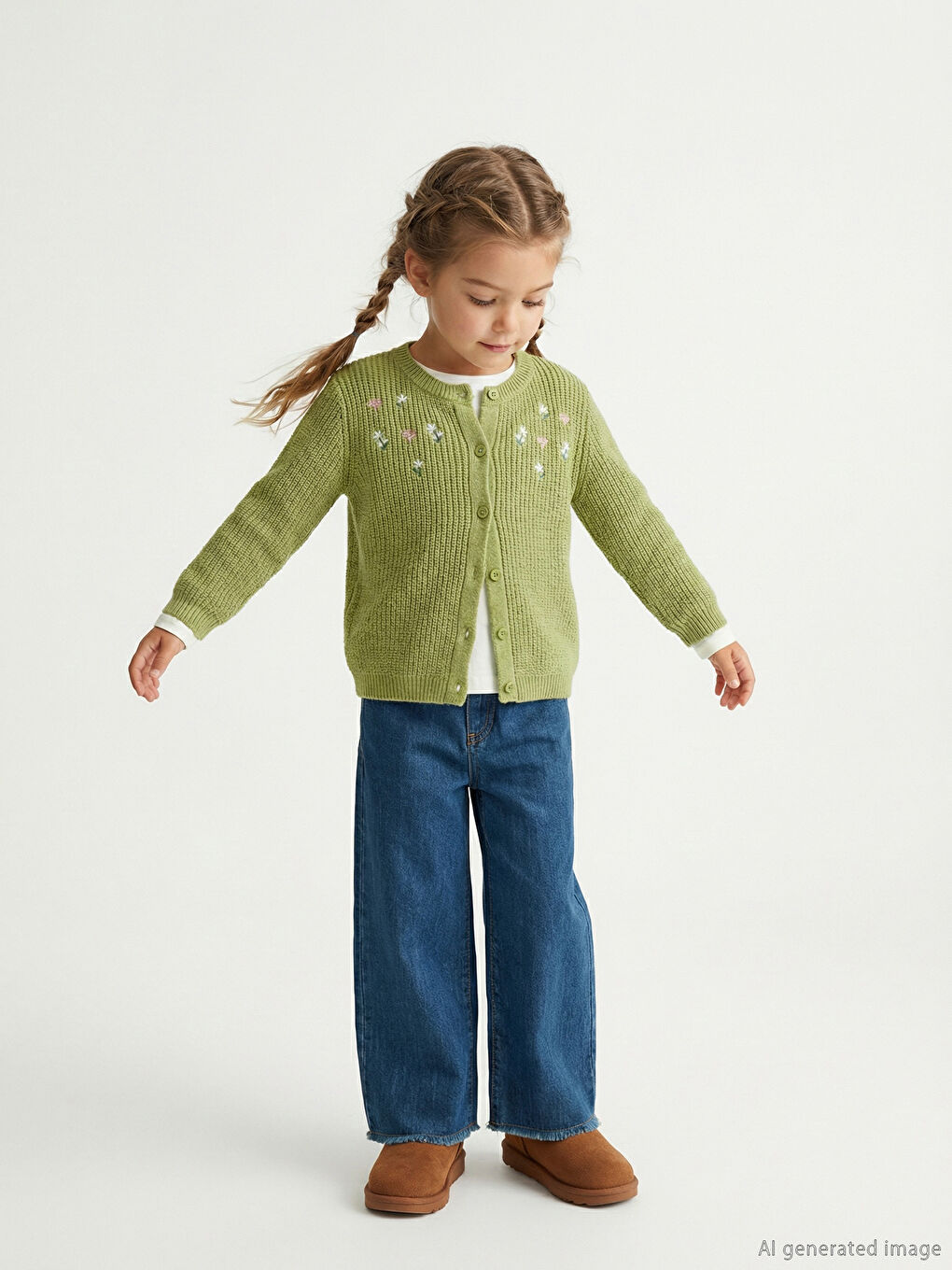 ژاکت بافتنی دخترانه با گلدوزی گل سبز