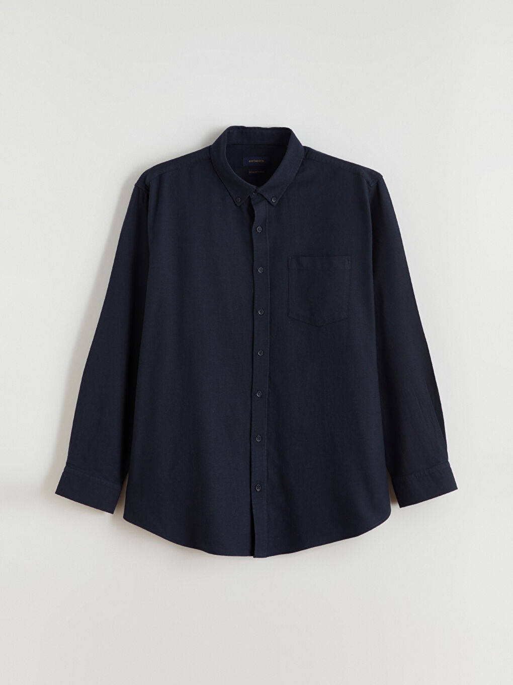 این پیراهن مردانه آستین بلند، با یقه دکمهدار، از جنس فلانل ۱۰۰٪ پنبه ساخته شده است. دارای یک جیب در جلو و یک جیب در سینه است.
