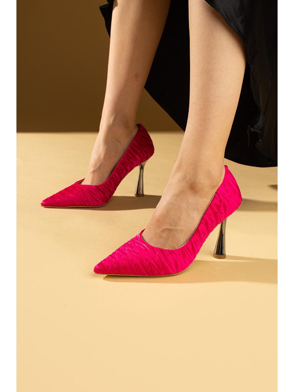 • مواد بیرونی: پارچه ساتن. • مواد داخلی: چرم Pu; • کف: جردان سول; • سایز پاشنه: 8 سانتی متر; • محل تولید: ترکیه;