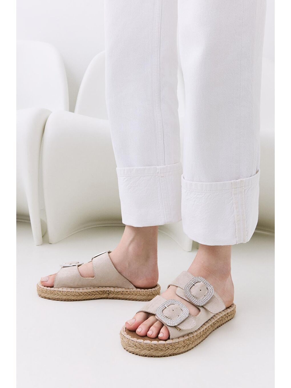 دمپایی تخت زنانه سگکدار بژ
