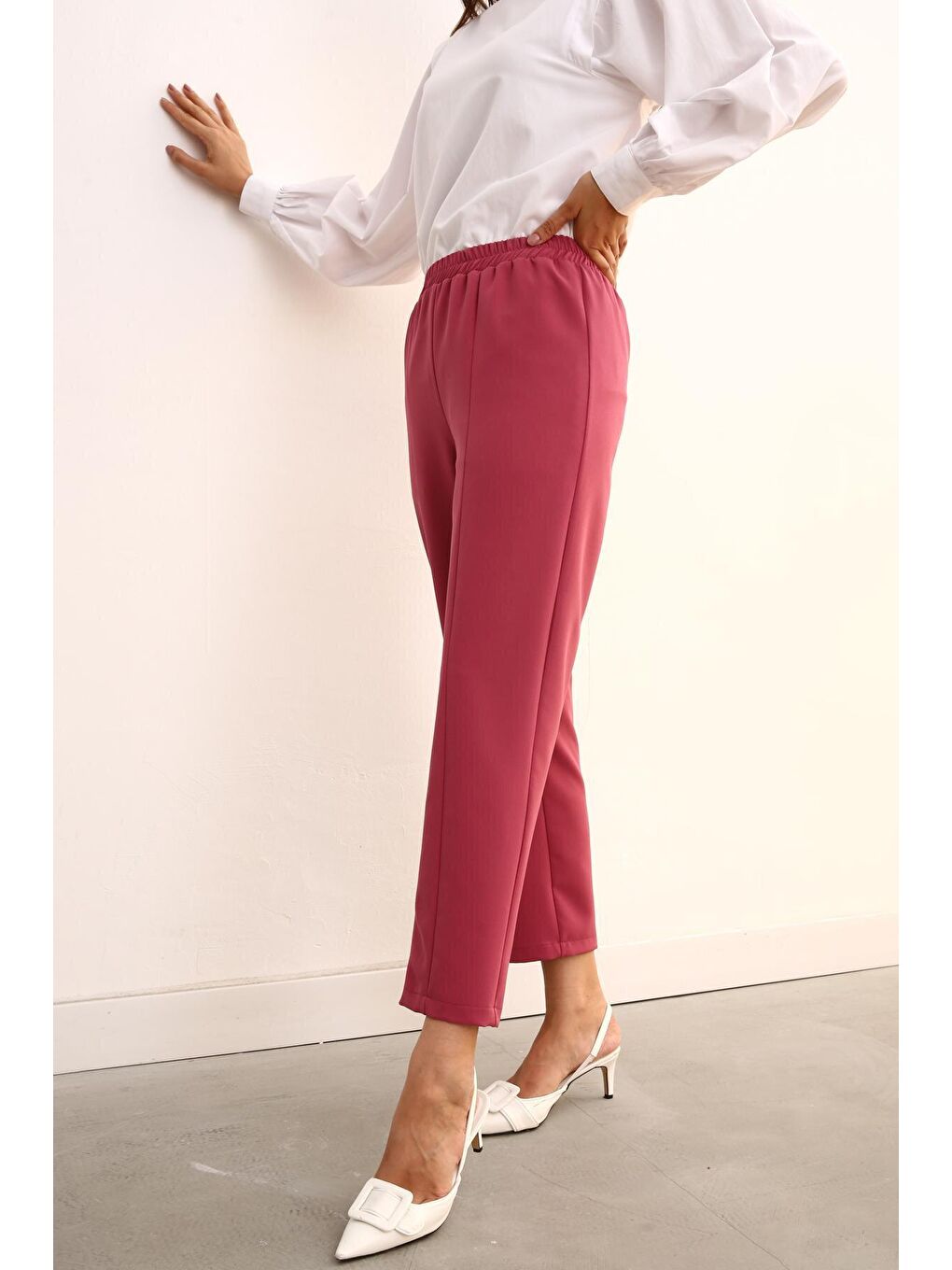 شلوار دمپا گشاد کمر کشی رز صورتی